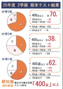 金町教室の25年度2学期期末テスト結果は以下の通りです。